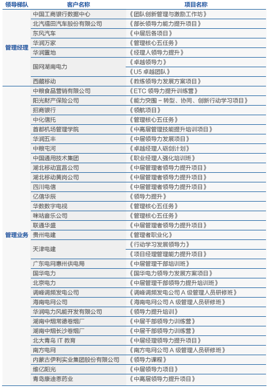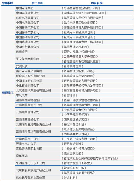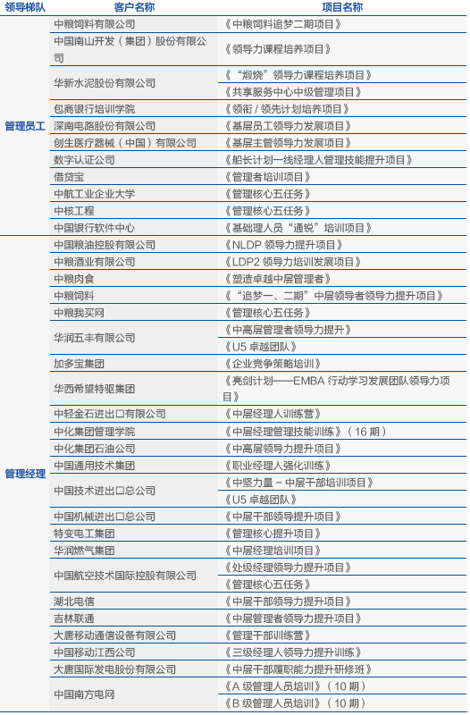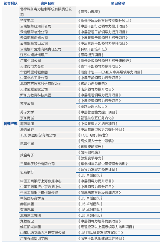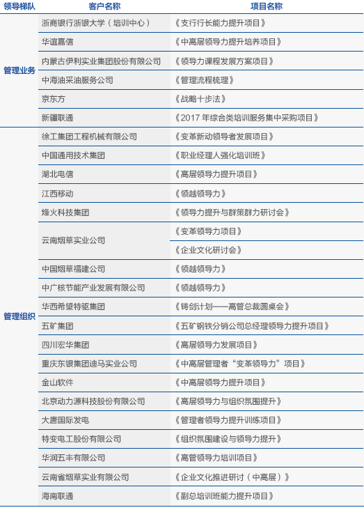 百年基業(yè)領(lǐng)導(dǎo)力發(fā)展項(xiàng)目重點(diǎn)客戶列表