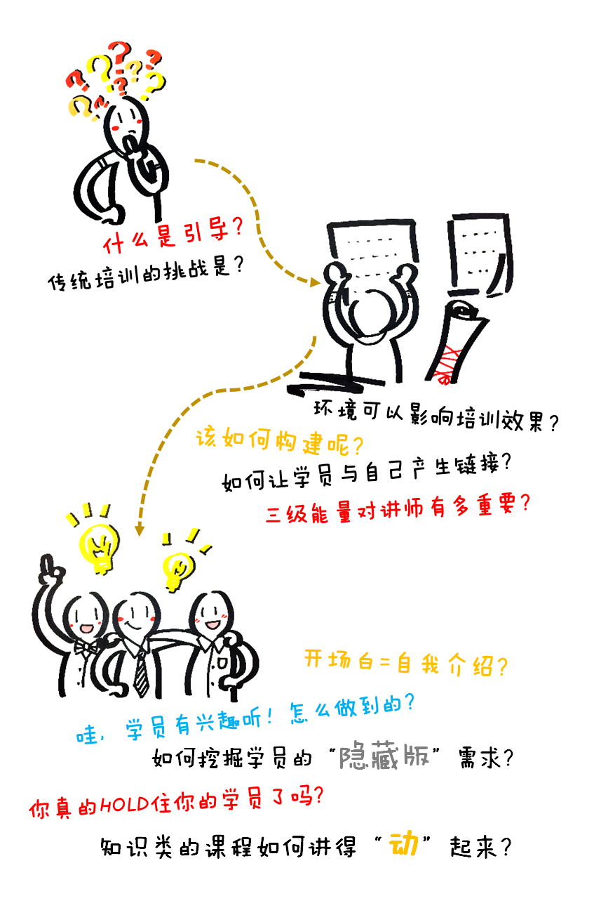 長期以來,我們一直在研究如何落地“以學(xué)員為中心”,探索更好地激發(fā)學(xué)員興趣,提升學(xué)員的參與感,鼓勵其主動思考,吸引深層互動的技術(shù)和手段。在系統(tǒng)分析諸多標(biāo)桿企業(yè)內(nèi)訓(xùn)師培養(yǎng)經(jīng)驗(yàn)的基礎(chǔ)上,整合了百年基業(yè)在內(nèi)訓(xùn)師培養(yǎng)和引導(dǎo)技術(shù)多年實(shí)踐經(jīng)驗(yàn)和理論研究,推出了這門專門針對企業(yè)優(yōu)秀內(nèi)訓(xùn)師的課程,如下圖所示: