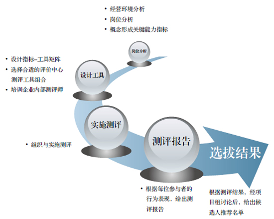針對(duì)以上挑戰(zhàn),我們采取了圍繞競(jìng)聘的關(guān)鍵崗位要求“用評(píng)價(jià)中心技術(shù)選拔高潛力人才,建立后備人才庫(kù)”的解決方案,通過(guò)四大步驟來(lái)實(shí)現(xiàn)優(yōu)秀繼任者的選拔: