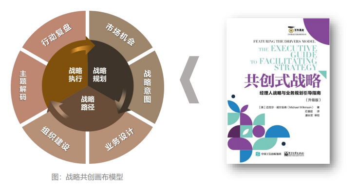 百年基業(yè)基于多年實(shí)戰(zhàn)研究,融合戰(zhàn)略咨詢、引導(dǎo)技術(shù)、行動(dòng)學(xué)習(xí),研發(fā)出這套戰(zhàn)略共創(chuàng)畫(huà)布,包括三大維度、六個(gè)步驟。