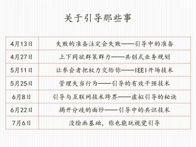在這里,你能收獲:行動(dòng)學(xué)習(xí)+引導(dǎo)的專業(yè)知識(shí)分享、工具技巧講授、企業(yè)應(yīng)用案例分析、微課視頻資源、線下沙龍、課程培訓(xùn)……