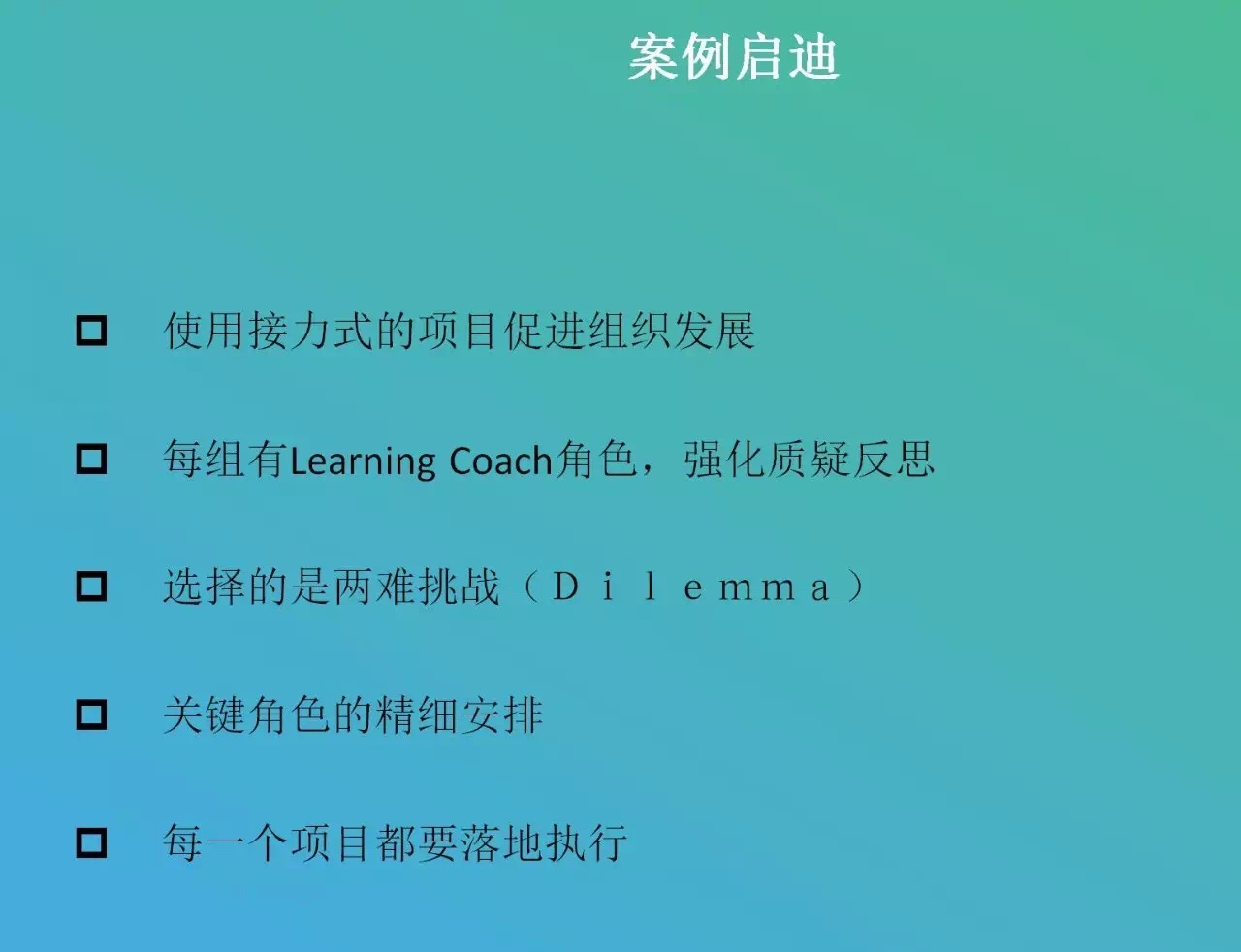 該項目應(yīng)用的并不是BDAL的行動學(xué)習(xí)模式,而是ARL行動學(xué)習(xí)模式,ARL產(chǎn)生于瑞典,在ARL流程中Learning Coach學(xué)習(xí)教練起到非常重要的作用,通過接入來推動反思,平衡挑戰(zhàn)反思與學(xué)習(xí),該模式中每個小組有一名經(jīng)驗豐富的Leanring Coach來進行介入。