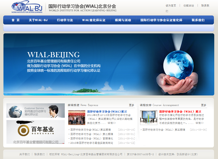 隨著行動(dòng)學(xué)習(xí)在培訓(xùn)業(yè)不斷升溫,為了更好的在行動(dòng)學(xué)習(xí)專業(yè)領(lǐng)域及信息分享方面發(fā)揮更加重要的作用,作為國(guó)際行動(dòng)學(xué)習(xí)協(xié)會(huì)(wial)北京分會(huì),百年基業(yè)推出國(guó)際行動(dòng)學(xué)習(xí)協(xié)會(huì)(wial)北京分會(huì)網(wǎng)站正式上線:www.wial.cn