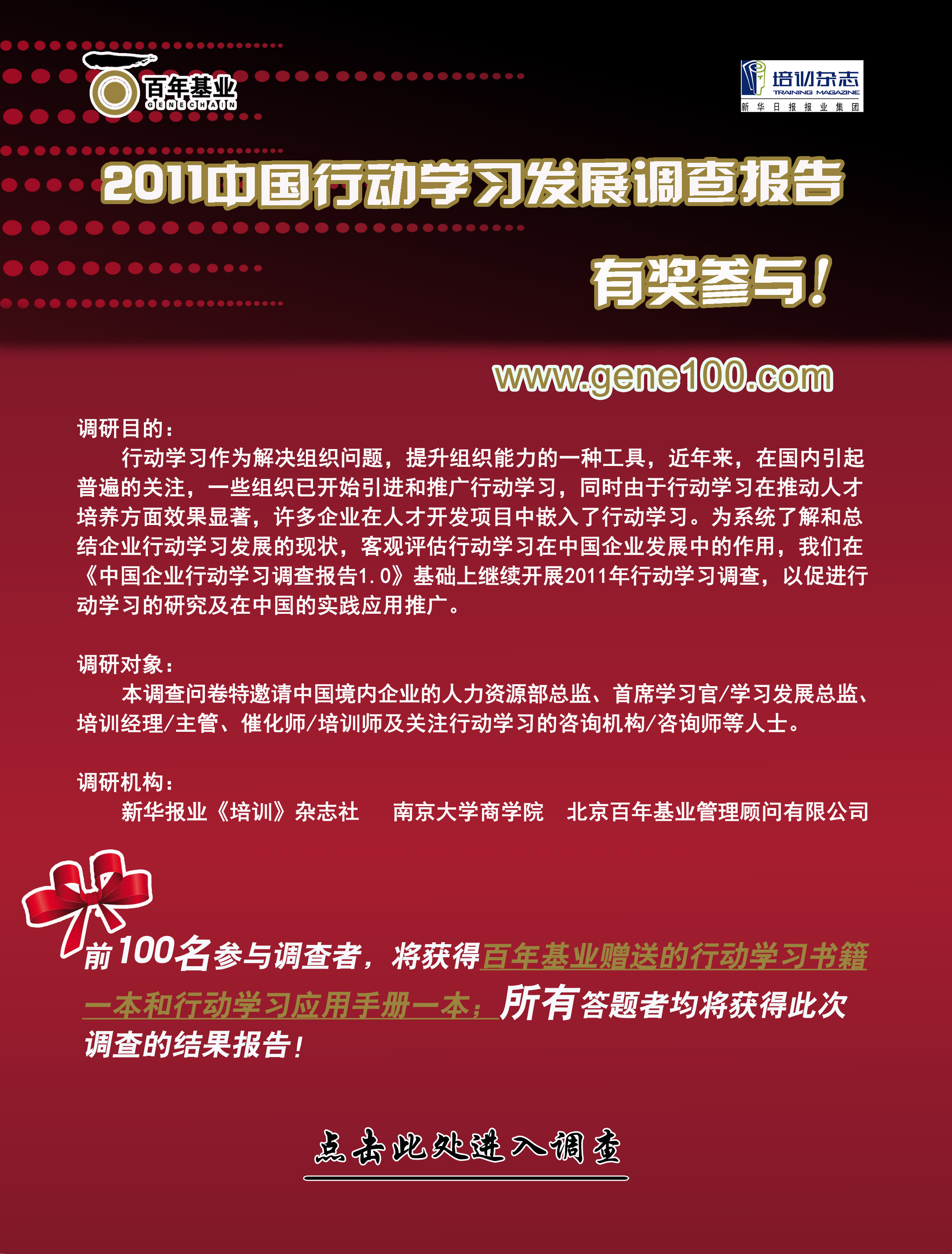 【有獎?wù){(diào)查】行動學(xué)習(xí)在中國企業(yè)的發(fā)展?fàn)顩r調(diào)查
