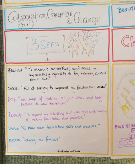 看!這是16個(gè)小組的討論分享成果,不同國(guó)家所有參會(huì)者的目標(biāo)在融合一起。