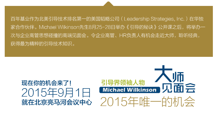【機(jī)不可失】引導(dǎo)界領(lǐng)袖人物Michael Wilkinson大師見面會(huì)——9月1日·北京