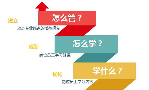 “學習地圖”相對“課程體系”來講,目的是相同的,但技術本質上又有很大的差異,課程體系是從“培訓”的視角出發(fā),解決員工成長的問題;學習地圖是從“業(yè)務”的視角出發(fā),解決員工成長的問題。同時,行業(yè)不同、企業(yè)不同、崗位不同均會對學習地圖成果的形式有很大的影響,但無論何家何派,我們認為學習地圖都是需要解決如下三個問題的: