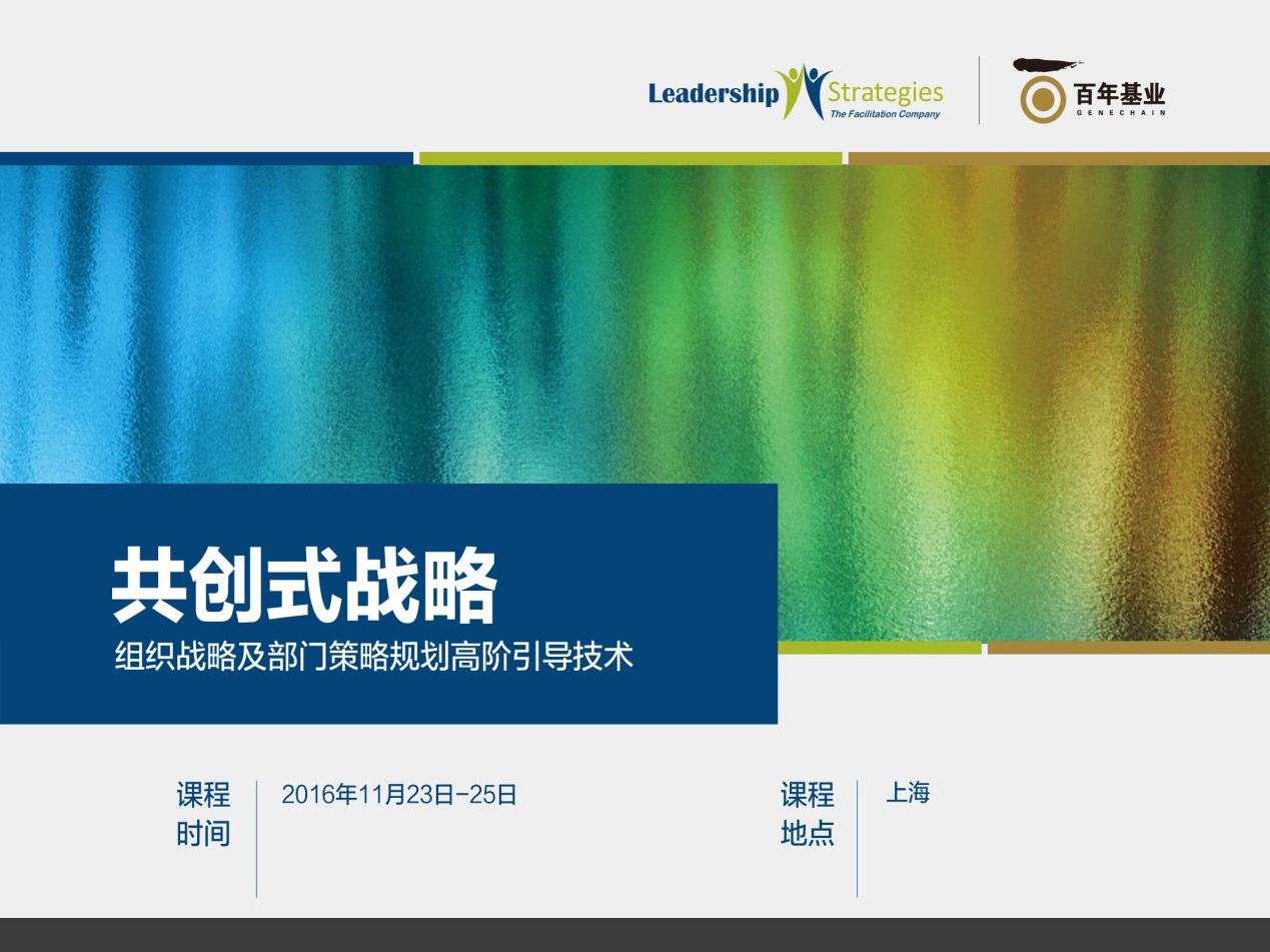 為幫助企業(yè)解決在戰(zhàn)略規(guī)劃、業(yè)務規(guī)劃和部門規(guī)劃過程中出現(xiàn)的難題與的困擾,美國引導排名第一的韜略公司(LSI)與百年基業(yè)公司強強合作,繼2015年在北京舉辦兩期《戰(zhàn)略共創(chuàng)》后,引起轟動,市場反應強烈,學員好評如潮。2016年11月,第三期《戰(zhàn)略共創(chuàng)》即將上海開課!通過本課程的學習,您將掌握如何準備、制定、實施和監(jiān)督一項成功的戰(zhàn)略規(guī)劃活動。讓您的戰(zhàn)略規(guī)劃步步奏效,招招落地!