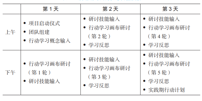 今天開始我們將進入啟動研討階段,主要任務(wù)是開好項目啟動研討會。這是整個項目的第一次集中,標志著項目正式開啟。 啟動研討會一般需要 2~3 天,主要完成以下幾個任務(wù)。 S3-1 實施準備 :在啟動研討會開始前,熟悉學(xué)員和課題,做好場地和物料等準備。 S3-2 開場啟動 :開啟整個項目,說明項目目的,介紹角色、學(xué)習(xí)規(guī)則和項目流程。 S3-3 課題研討 :輸入行動學(xué)習(xí)概念和研討技巧,完成課題的第一輪研討。 S3-4 行動承諾 :幫助每位學(xué)員制訂精準的課題行動計劃,在實踐期執(zhí)行。 今天為大家介紹啟動研討階段的第三個步驟:課題研討。 S3-3 課題研討 啟動研討會的參考日程模板 上表是一份啟動研討會的參考日程模板。通過這個模板,可以看到啟動研討會包含 3 個核心任務(wù) : ① 行動學(xué)習(xí)概念與技能輸入 ; ②多輪次研討催化 ; ③ 建立行動承諾。 本小節(jié)主要介紹前兩項任務(wù)。 行動學(xué)習(xí)概念與技能輸入 為了開展行動學(xué)習(xí)畫布研討,你需要讓學(xué)員知道行動學(xué)習(xí)是什么。這個輸入不宜過長,先讓學(xué)員有一個基本的概念,即可以開始進入研討。學(xué)員經(jīng)過幾輪研討之后,自然會慢慢體會到什么是行動學(xué)習(xí)。 每輪研討之間,可以循序漸進地輸入一些研討技巧。一來可以讓學(xué)習(xí)內(nèi)容更加豐富,二來也能有效提高小組研討質(zhì)量。 建議先從聆聽和提問技巧開始輸入,再逐步講解和練習(xí)重構(gòu)、分享、反思、反饋等技巧。 根據(jù)經(jīng)驗,這些技能輸入可以帶來明顯的研討效果提升。例如,輸入四層次聆聽之后,參與者聆聽的意愿度和討論的參與度會明顯提升。講完四層次重構(gòu)和 4R 反思法,整個團隊的學(xué)習(xí)反思水平都提升了。 附 :學(xué)習(xí)風(fēng)格測試簡介 在啟動研討會上,可以設(shè)計“學(xué)習(xí)風(fēng)格測試”模塊。學(xué)習(xí)風(fēng)格理論最早由大衛(wèi)·庫伯(David Kolb)提出,他將學(xué)習(xí)者的學(xué)習(xí)風(fēng)格分為四類 :行動型、理論型、發(fā)散型、聚焦型(見下圖 )。 每個人的學(xué)習(xí)風(fēng)格不同,相應(yīng)的風(fēng)格特征,以及偏好的學(xué)習(xí)方式也不同。 學(xué)習(xí)者的學(xué)習(xí)風(fēng)格 通過講解和測評,小組成員可以發(fā)現(xiàn)自己屬于哪種類型,其他小組成員分別屬于哪種風(fēng)格,并了解每種學(xué)習(xí)風(fēng)格有什么特點,喜歡什么樣的學(xué)習(xí)方式。 對于學(xué)員個體來說,這個活動可以幫助更好地了解自己的學(xué)習(xí)偏好,與不同學(xué)習(xí)風(fēng)格的人建立良好關(guān)系,并在不同場景下,嘗試靈活改變自己學(xué)習(xí)風(fēng)格,以提升個人和小組的效率。 對于整個小組,學(xué)習(xí)風(fēng)格測試可以讓成員加深彼此了解,并發(fā)揮各自的優(yōu)勢,取長補短,以提高協(xié)作和研討效率,減少相互沖突。 對于小組催化師來說,這個活動可以幫助更好地了解每位小組成員和整個小組的情況,以便針對不同的學(xué)習(xí)風(fēng)格,采用針對性的催化干預(yù)措施。 多輪次研討催化 啟動研討會的重點在于課題研討。每個小組在催化師的帶領(lǐng)下,使用行動學(xué)習(xí)畫布工具,按照第 2 篇的操作步驟,研討每位小組成員的課題。 研討輪次 :如果啟動研討會時間足夠,建議每位學(xué)員的課題都應(yīng)該研討一次。 根據(jù)經(jīng)驗,通常每半天時間可以研討一個課題。所以如果每組 5~6 位學(xué)員,那么每個人的課題研討一次,大概需要 2.5~3 天。如果啟動研討會日程緊張,無法完成每位小組成員的課題,那么可以在實踐期進行小組集中,研討完剩余的課題。 研討順序 :開始研討之前,小組成員要在組內(nèi)簡單介紹自己的課題,然后確定小組的課題研討順序。 這里有個小訣竅,我一般會分析哪位學(xué)員打開度最高,然后建議小組優(yōu)先討論他的課題。因為場域是逐漸形成的,第一輪催化往往最為艱苦,選擇心態(tài)開放的難題提出者有助于營造場域,幫助快速打開局面。 研討工具 :研討工具優(yōu)先選擇行動學(xué)習(xí)畫布。如果時間緊迫,可以采用非視覺化的重構(gòu)法,以節(jié)約總體時間。如果遇到特別固執(zhí)己見的難題提出者,可以適時加入“流言蜚語”環(huán)節(jié),幫助難題提出者更好地覺察自我。 時間把控 :主講老師要提前限定每輪的研討時間(如 2 小時),讓每位小組催化師確保按時完成研討。否則如果各個小組進度不同,有的小組聊得熱火朝天,有的小組卻只能干等著,那樣就比較尷尬了。 而且根據(jù)經(jīng)驗,并不是時間越長,研討就越深入。如果討論得拖拖拉拉,反而不容易出成果。如果到了時間沒有研討完,也不必過于糾結(jié),可以等到休息吃飯的時候再繼續(xù)討論。 本文引自《行動學(xué)習(xí)畫布》一書 下一期思享薈將為大家介紹ADAPT 行動學(xué)習(xí)項目設(shè)計實施模型圖的第三步-S3-4啟動研討之行動承諾敬請期待!