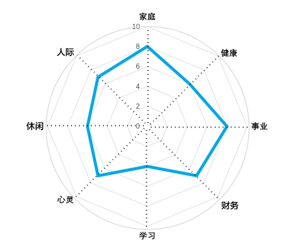 這個(gè)工具可以幫助找到自己相對(duì)欠缺和不滿意的方面,告訴人們哪個(gè)部分已經(jīng)失衡了。如一位伙伴評(píng)估之后,發(fā)現(xiàn)學(xué)習(xí)維度的得分很低。他這才意識(shí)到已經(jīng)很久沒(méi)有關(guān)注個(gè)人發(fā)展和能力成長(zhǎng)了,于是他就提出了一個(gè)個(gè)人成長(zhǎng)方面的難題。