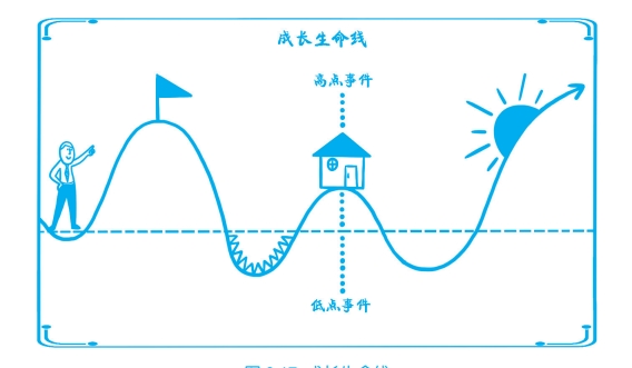 在討論中可能涉及商業(yè)機(jī)密,也可能暴露個(gè)人隱私,甚至要袒露自己的各種缺點(diǎn)和弱點(diǎn),這要求絕對(duì)安全和信任的場(chǎng)域。為此我們做過(guò)一輪成長(zhǎng)生命線分享(見(jiàn)下圖),每個(gè)人分享自己生命成長(zhǎng)中的高點(diǎn)、低點(diǎn)和轉(zhuǎn)折點(diǎn)的人生故事。