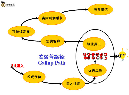 由這12個(gè)問題, 蓋洛普公司開發(fā)形成了一套工作環(huán)境評(píng)測(cè)與管理系統(tǒng)--Q12。通過就12個(gè)核心問題對(duì)員工實(shí)施全員的民意調(diào)查,獲得關(guān)鍵業(yè)績(jī)指標(biāo)中有關(guān)員工敬業(yè)度和工作環(huán)境質(zhì)量的重要數(shù)據(jù),進(jìn)而采取有效措施提升管理人員特別是一線經(jīng)理的管理效能,強(qiáng)化企業(yè)的執(zhí)行力,將企業(yè)文化建設(shè)落到實(shí)處,最大限度地幫助企業(yè)實(shí)現(xiàn)短期經(jīng)營(yíng)目標(biāo)和長(zhǎng)遠(yuǎn)發(fā)展藍(lán)圖。