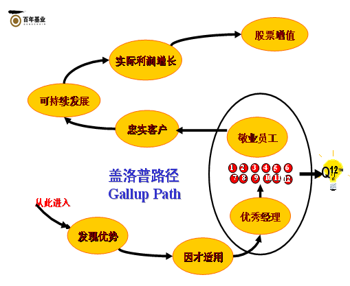 由這12個(gè)問題, 蓋洛普公司開發(fā)形成了一套工作環(huán)境評(píng)測(cè)與管理系統(tǒng)--Q12。通過就12個(gè)核心問題對(duì)員工實(shí)施全員的民意調(diào)查,獲得關(guān)鍵業(yè)績(jī)指標(biāo)中有關(guān)員工敬業(yè)度和工作環(huán)境質(zhì)量的重要數(shù)據(jù),進(jìn)而采取有效措施提升管理人員特別是一線經(jīng)理的管理效能,強(qiáng)化企業(yè)的執(zhí)行力,將企業(yè)文化建設(shè)落到實(shí)處,最大限度地幫助企業(yè)實(shí)現(xiàn)短期經(jīng)營(yíng)目標(biāo)和長(zhǎng)遠(yuǎn)發(fā)展藍(lán)圖。