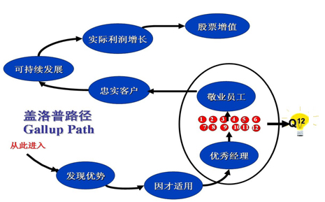 由這12個問題, 蓋洛普公司開發(fā)形成了一套工作環(huán)境評測與管理系統(tǒng)--Q12。通過就12個核心問題對員工實施全員的民意調(diào)查,獲得關鍵業(yè)績指標中有關員工敬業(yè)度和工作環(huán)境質(zhì)量的重要數(shù)據(jù),進而采取有效措施提升管理人員特別是一線經(jīng)理的管理效能,強化企業(yè)的執(zhí)行力,將企業(yè)文化建設落到實處,最大限度地幫助企業(yè)實現(xiàn)短期經(jīng)營目標和長遠發(fā)展藍圖。