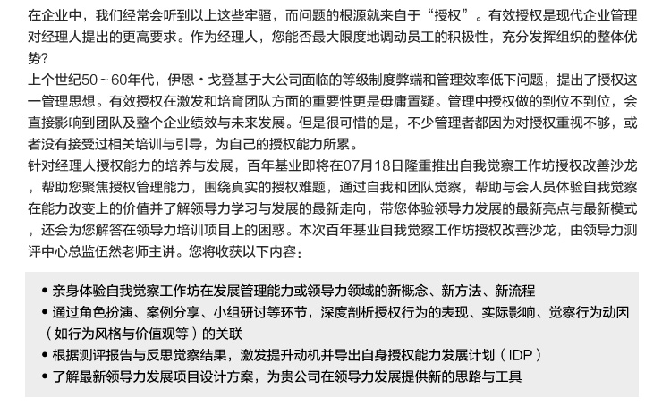 百年基業(yè)自我覺(jué)察坊之授權(quán)改善免費(fèi)沙龍
