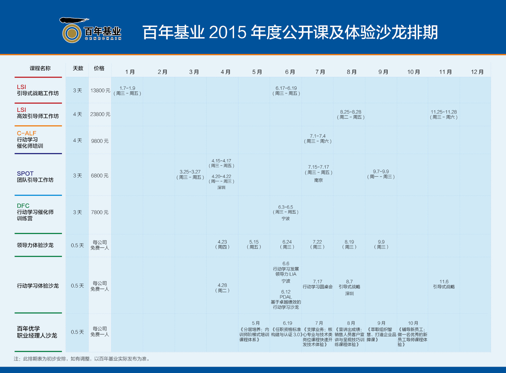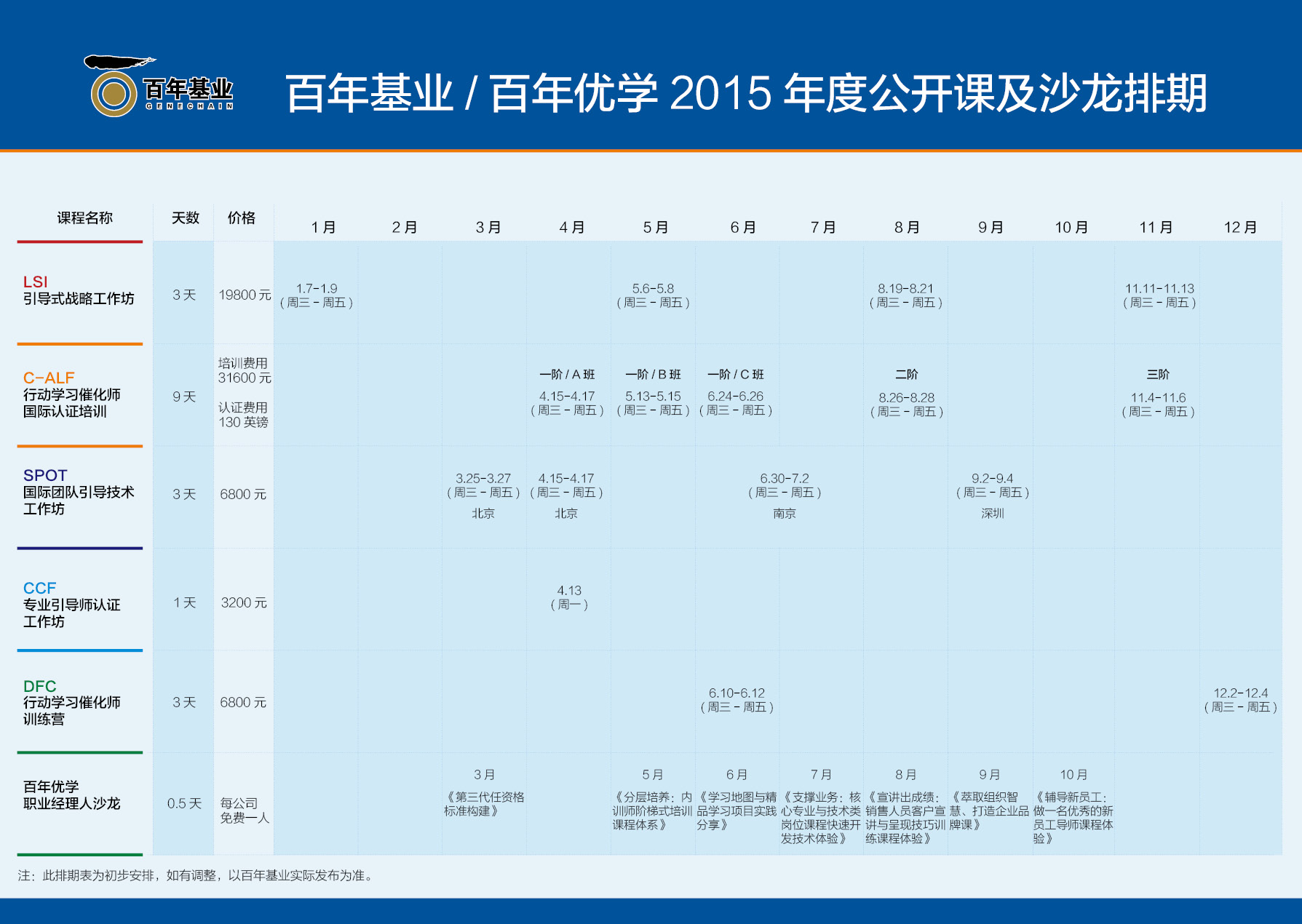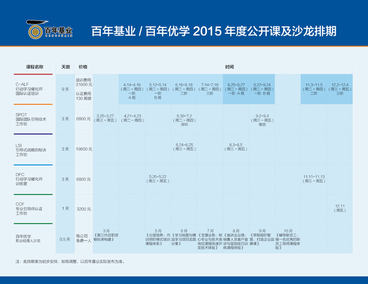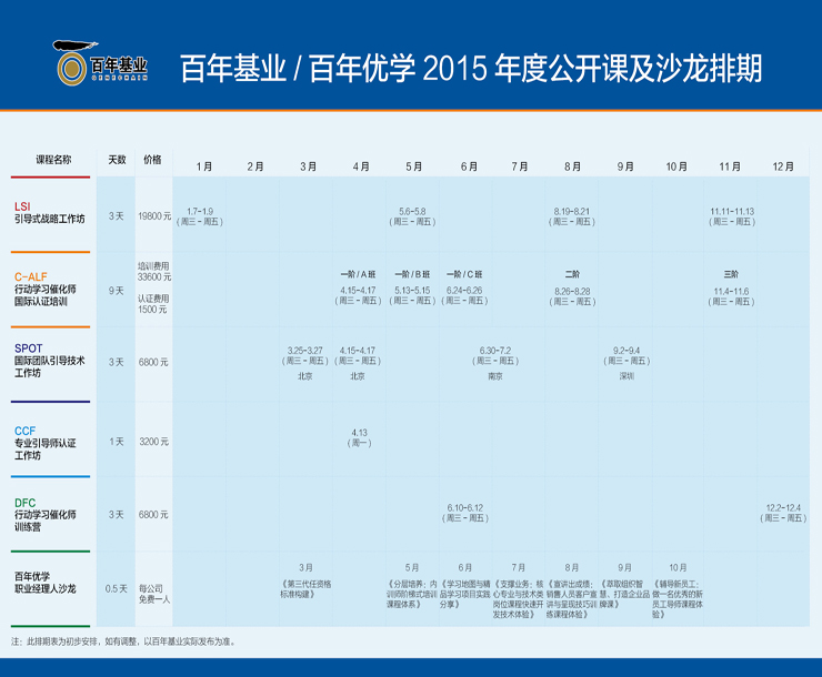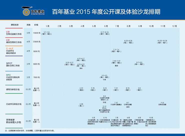 百年基業(yè)/百年優(yōu)學 2015年度公開課及沙龍排期表,