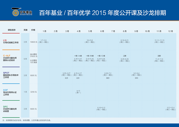 百年基業(yè)/百年優(yōu)學 2015年度公開課及沙龍排期表